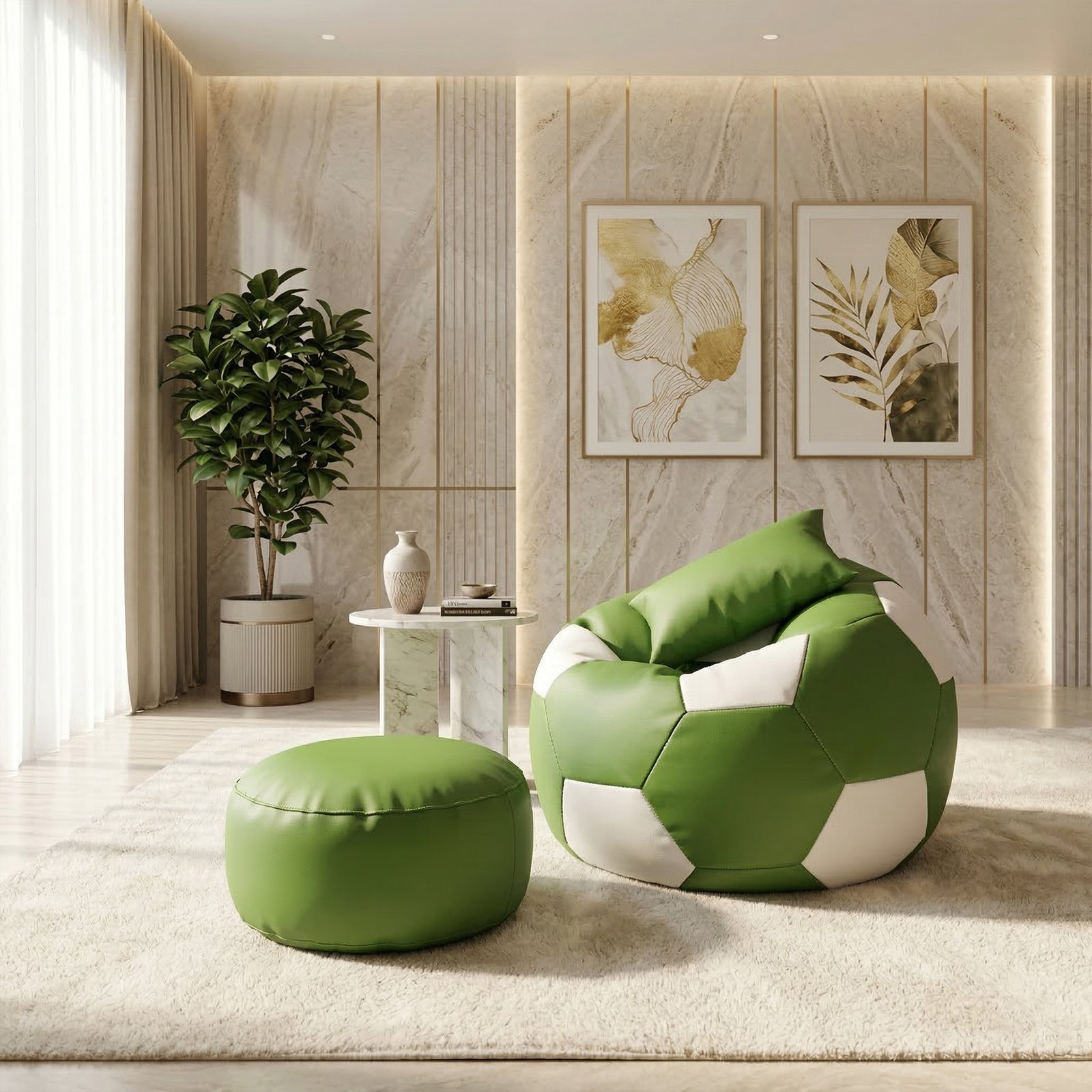 Faux Leather Xxl Pear Shape 3pcs Combo Bean Bag – Green