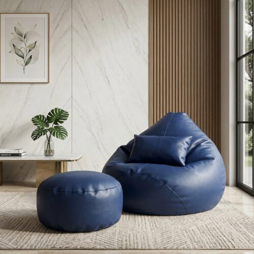 Faux Leather Xxl Pear Shape 3pcs Combo Bean Bag – Navy Blue