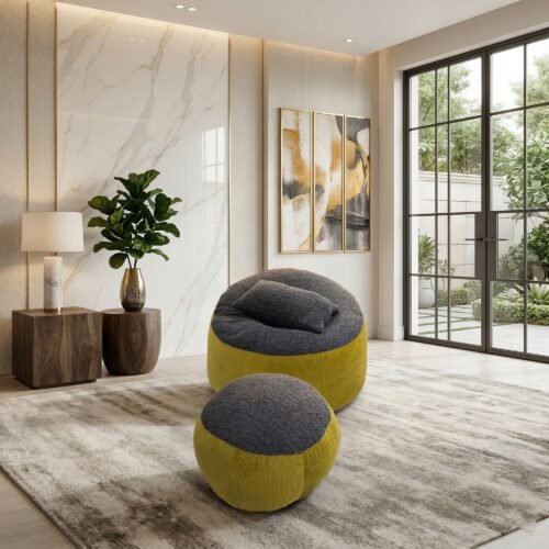 Giant Roll Fabrics Xxl 3pcs Combo Bean Bag- Golden/Charcoal
