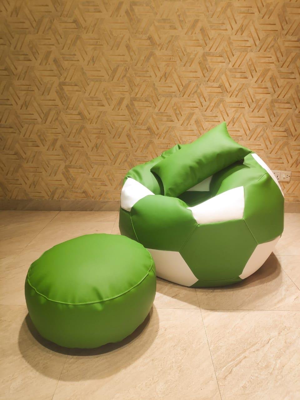 Faux Leather XxL Football Shape 3pcs Combo Bean Bag-Green/White