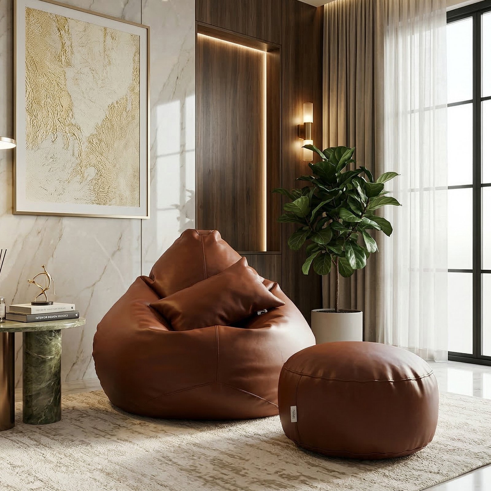 Faux Leather Xxl Pear Shape 3pcs Combo Bean Bag – Coconut