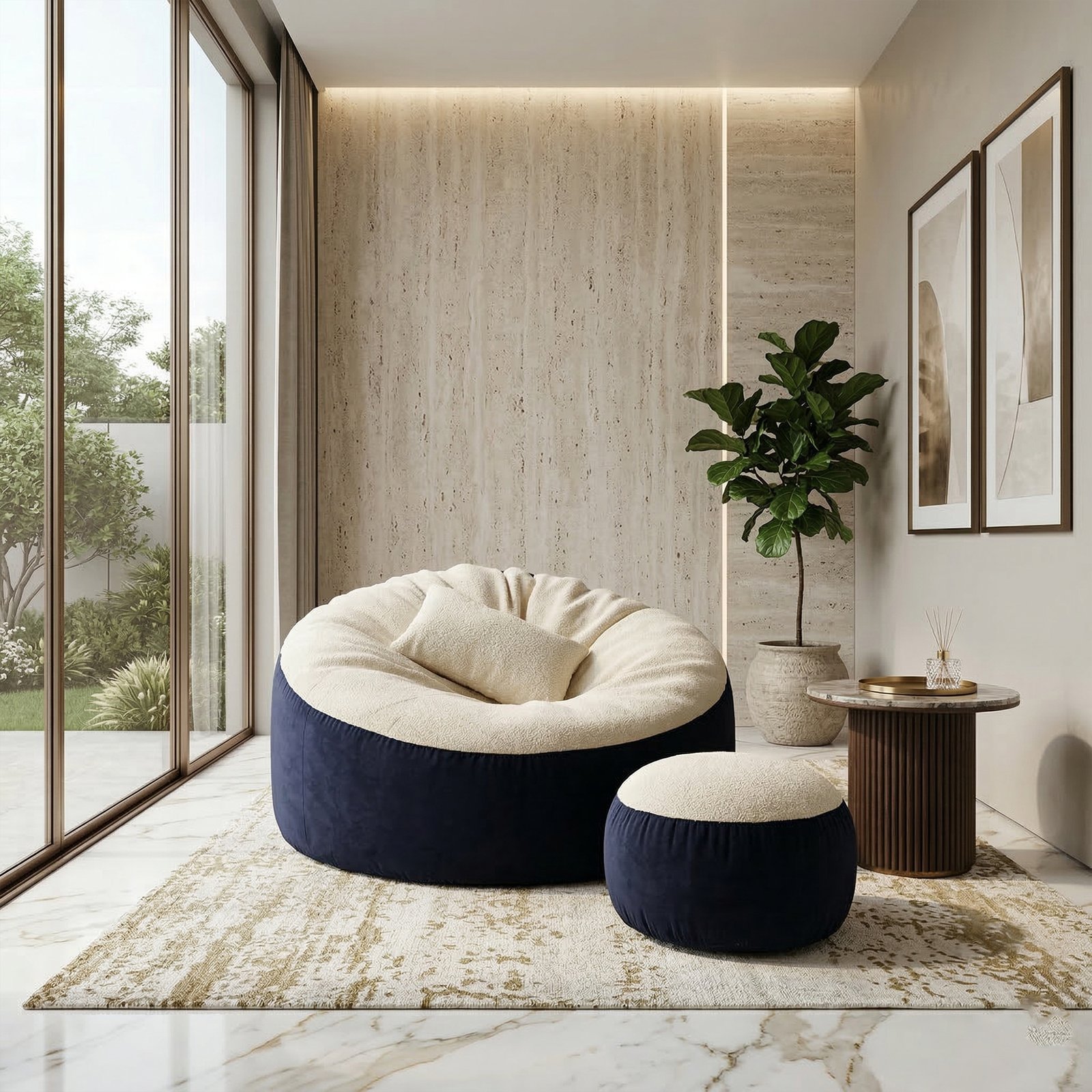 Giant Roll Fabrics Xxxl 3pcs Combo Bean Bag- Navy Blue/Cream