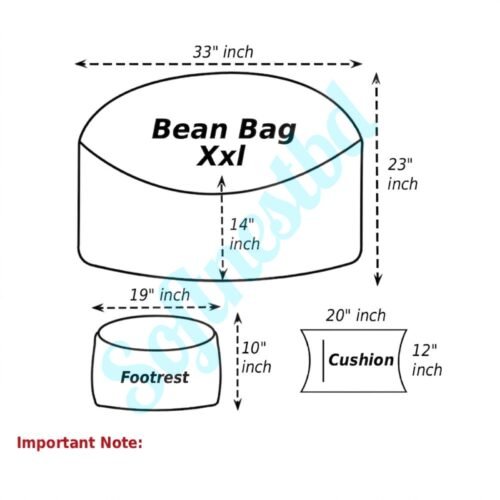* ফিলার: বিন ব্যাগ এবং ফুট রেস্টের ভিতরে থাকবে প্রিমিয়াম কোয়ালিটি তাইওয়ানিজ ই,পি,এস বিনস এবং কুশনের ভিতরে থাকবে উন্নত মানের কোরিয়ান পলি ফাইবার তুলা।
